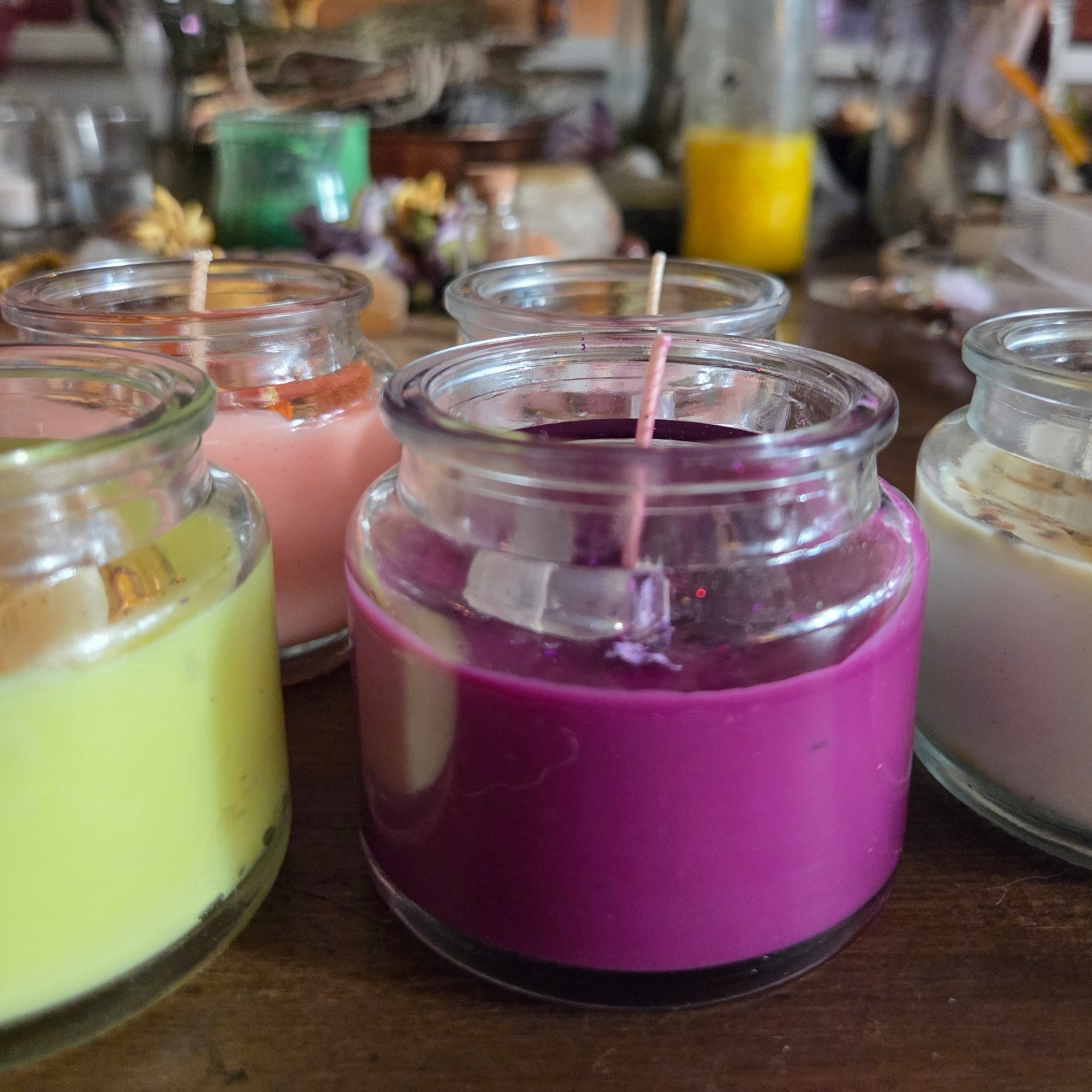 Purple candles are the magickal gateway to the realms of psychic vision, spiritual awakening, divine wisdom, and cosmic expansion. Associated with the Third Eye Chakra, the planet Jupiter, and the day Thursday, purple is the color of royalty, mystery, and deep inner knowing.